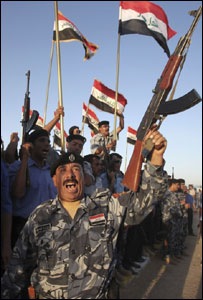 中新網(wǎng)6月30日電 據(jù)英國廣播公司報道,29日,伊拉克政府軍士兵比預定交接時間提前一天開始慶祝美國軍隊正式撤出巴格達。