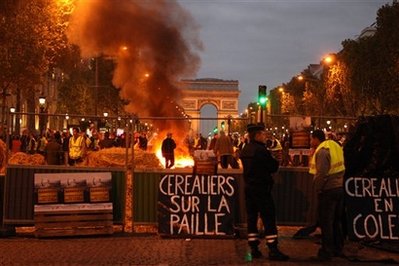 但他的講話并未阻止全國抗議活動的進(jìn)行。在巴黎,幾十位農(nóng)民在香榭麗舍大道Fouquet餐館外燃燒輪胎等。2007年法國總統(tǒng)薩科齊正是在該餐館與其富人朋友們慶祝了大選的勝利。
