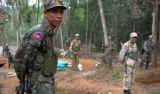 世界法庭在1962年裁定古寺歸柬埔寨所有,但由于柬埔寨數(shù)十年來的戰(zhàn)爭導致兩國邊界地區(qū)布滿地雷,因此,柬泰邊界一直沒有劃定界限。