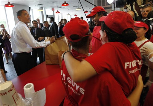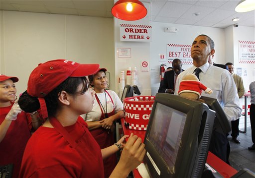 據(jù)《星島日?qǐng)?bào)》報(bào)道,奧巴馬到華盛頓一家連鎖快餐店買漢堡包,期間又與市民握手問(wèn)好,他點(diǎn)了芝士漢堡包及薯?xiàng)l作午餐,還請(qǐng)下屬進(jìn)食,以及隨行拍攝的電視臺(tái)職員。在排隊(duì)期間,奧巴馬吃了點(diǎn)零食,與其他顧客聊天,也有人要求與他拍照留念。