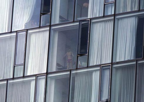 在美國(guó)紐約市新近開(kāi)放的High Line公園內(nèi),矗立著Standard Hotel酒店, 該酒店房間面朝公園的一面被建造為落地玻璃窗,方便房客俯瞰公園景色,當(dāng)然,酒店外的人也能透過(guò)玻璃窗清楚地看到房間里的景象。然而,許多房客不知出于什么原因,經(jīng)常沒(méi)有拉上窗簾,就進(jìn)行各種私人活動(dòng),將一些裸露、猥褻、甚至粗野的行為都完整地暴露在公眾的視線當(dāng)中,讓公園游客們大飽眼福。