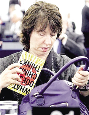 當(dāng)?shù)貢r(shí)間9日,歐盟女外長(zhǎng)阿什頓出席歐洲議會(huì),入場(chǎng)坐定后,就從包里掏出一本名為《中國(guó)怎么想》的書(shū),這一瞬間剛好被美聯(lián)社記者的快門(mén)捕捉下來(lái)。