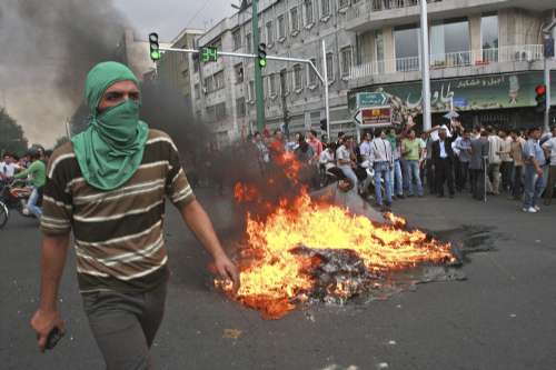 在十三日爆發(fā)的騷亂中,揮舞警棍的防暴警察與示威者爆發(fā)沖突,群眾高呼“處死獨(dú)裁者”,向警員扔擲石塊,又放火焚燒警車和垃圾桶。大批警員駐守在內(nèi)政部周圍,一幢銀行建筑物嚴(yán)重焚毀,通往德黑蘭大學(xué)學(xué)生宿舍的道路被封鎖。