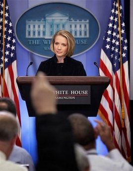 佩里諾與記者的問答發(fā)生在10月26日的白宮新聞簡報會上,記者問她:“俄羅斯總統(tǒng)普京說,美國在東歐建立導彈防御網(wǎng)就好像蘇聯(lián)在古巴部署導彈一樣,會成為另一個古巴導彈危機,你做何評論?”佩里諾回答:“我想拿那段歷史作比較不見得完全正確。”