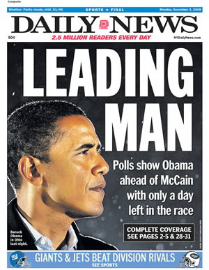 中新網(wǎng)11月4日電 據(jù)星島環(huán)球網(wǎng)報道,在大選投票還有最后一天之際,《紐約郵報》和《紐約每日新聞》等美國主要報紙11月3日在頭版都提前刊登了奧巴馬獲勝,成為白宮新主人的消息。