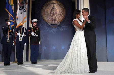據(jù)英國(guó)路透社報(bào)道 奧巴馬就職典禮后的舞會(huì)要比宣誓儀式進(jìn)行得順利一些。美國(guó)新任總統(tǒng)奧巴馬之前一直為自己的舞技而苦惱,他在當(dāng)晚的10場(chǎng)舞會(huì)中,盡力避免踩到自己妻子的腳趾,但妻子的長(zhǎng)長(zhǎng)裙擺還是不斷給他制造了麻煩。