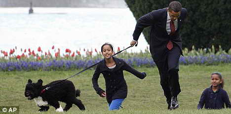 據(jù)英國《每日郵報》報道,如果奧巴馬認為競選美國總統(tǒng)是一件很辛苦的事,那他現(xiàn)在可能已在著手應對一項更為艱難的挑戰(zhàn)。在“第一狗”來到白宮數(shù)小時后,奧巴馬就因為趕不上它的步伐而差點摔倒,這使他的兩個女兒感到很好笑。