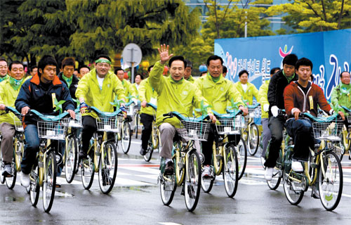 李明博當天出席在慶南昌原舉行的“第一屆韓國自行車慶典”閉幕活動,并通過賀詞作了上述表述。他說,大城市應建設可安全騎自行車的專用道,并制定保險制度,同時為建立各項基礎設施做諸般工作。政府正在制定相關計劃。