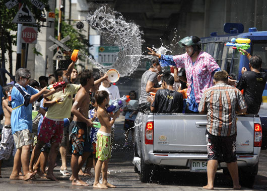 國(guó)際先驅(qū)導(dǎo)報(bào)記者沈敏 特約撰稿蔣曉峰發(fā)自曼谷 今年的宋干節(jié)(潑水節(jié))有了個(gè)“黑色”,至少是“灰色”的開(kāi)始,但一天過(guò)后,泰國(guó)人的節(jié)日情緒又開(kāi)始高調(diào)起來(lái)。