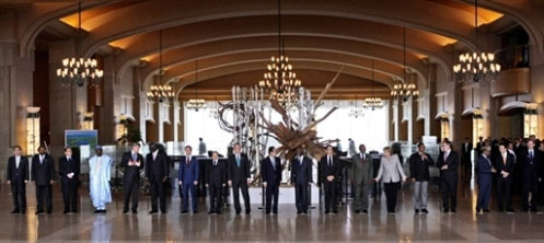 7月7日,出席八國集團首腦與非洲國家領(lǐng)導(dǎo)人對話會議的有關(guān)國家領(lǐng)導(dǎo)人在一起。