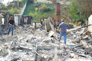 哈姆爾(Jamul)附近的居民也對(duì)盜賊提心吊膽。當(dāng)?shù)氐囊粦?hù)居民沒(méi)有理會(huì)疏散令,夫妻兩個(gè)帶著女兒擅自做主留在了家中。星期一的晚間,他們9次聽(tīng)到有車(chē)開(kāi)進(jìn)他們家的私人車(chē)道,這些車(chē)上的人看到他們家中仍然有人后,就開(kāi)車(chē)離開(kāi)了。他們懷疑這些駕車(chē)人是在窺探空房中的財(cái)物:“大火損失財(cái)產(chǎn)是一回事,遭盜竊則是另一回事!