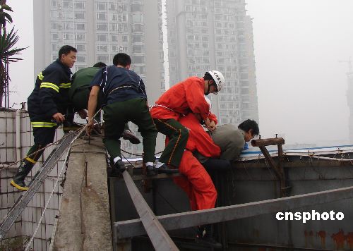 11月11日上午,在四川省內(nèi)江市東興區(qū)西林大橋橋頭一七層高樓外的廣告牌上,一青年男子利用手中擴音喇叭高喊“因工作失意,欲一死了之”,很快吸引了數(shù)百名群眾。趕到現(xiàn)場的派出所民警和消防戰(zhàn)士將其成功解救。