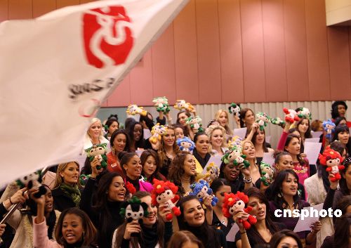 十一月十九日,來自世界一百多個國家和地區(qū)的一百零六名世界小姐在北京舉行奧運(yùn)歌曲《點(diǎn)燃激情 傳遞夢想》英文版錄制活動。這首北京奧運(yùn)圣火歌曲將在奧運(yùn)歷史上成為演員國別和地區(qū)最多的一首歌。一百零六名世界佳麗現(xiàn)場演唱北京奧運(yùn)歌曲。中新社發(fā) 任海霞 攝
