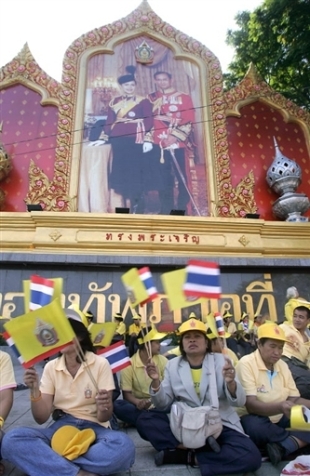 中新網(wǎng)12月5日電 綜合報(bào)道,12月5日是泰國(guó)國(guó)王普密蓬的80歲壽辰,泰國(guó)各界舉行慶典隆重紀(jì)念。數(shù)萬泰國(guó)民眾參加了當(dāng)天的慶;顒(dòng),普密蓬和王后接受民眾的歡呼致意。
