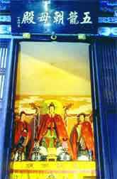 五龍朝母殿:綿山原是五龍的道場。后來龍母為高僧志超讓出抱腹巖后,五龍兄弟心中不服,后經(jīng)龍母感化,并在高僧志超的感召下,他們悟性大開,終成正果。以后五龍兄弟經(jīng)常施風(fēng)布雨,救護百姓,成了遠近鄉(xiāng)村的保護神,因此受到了百姓的虔誠供養(yǎng)。