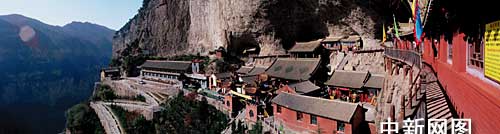 云峰寺原名抱腹寺,因建于抱腹巖而得名。始建于三國(guó)曹魏時(shí)期,距今一千七百余年。抱腹巖坐東面西,高60米,深50米,長(zhǎng)180米,分上下兩層,抱二百余間殿宇、館舍于“腹”內(nèi),容兩千年歷史文明于其間,為天下“絕無(wú)僅有”。主要景點(diǎn)有毗盧殿、玉皇閣、空王殿、五龍殿、迪公洞、鸞公洞、五龍松、鐵索嶺、《大唐汾洲抱腹寺碑》等四十余處。寺內(nèi)供奉有當(dāng)?shù)卣嫔窠橹、真佛空王佛?胀踔境菨h人第一個(gè)成佛的,塑像為包骨真身。寺內(nèi)還保存有許多唐、宋、元、明碑刻、雕塑,具有很高的文物價(jià)值。抱腹巖頂壁掛鈴,場(chǎng)面驚心動(dòng)魄,令人贊嘆叫絕。鐵索嶺是天下最古老的攀崖鐵索險(xiǎn)道。鐵索嶺的鐵索和下方云梯懸掛于唐代之前,是唐代大詩(shī)人賀知章當(dāng)年登山的一條險(xiǎn)徑。明末清初大學(xué)者傅山于崇禎十年(1637)題寫(xiě)的長(zhǎng)聯(lián),清光緒三年(1877)皇帝所賜“慈云法雨”御匾,以及當(dāng)代著名學(xué)者,邑人張頷所題“抱腹棲云”的匾額,都是不可多得的珍品。巖左側(cè)現(xiàn)建有四星級(jí)的“云峰墅苑”。云峰寺已成為一個(gè)拜佛、觀光、旅游、度假的理想處所。