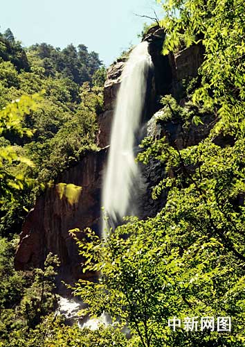 瀑布群 由水濤溝逆上,可以看到幾十處大小不一、形態(tài)各異的瀑布,形成了一幅異彩紛呈的山水畫卷和瀑布群體.主要有:五虎山、仙童坐龜、水牛競渡、虎神護藥、二龍戲水、碧溪垂釣.佛香亭、五龍樹、神泉浴、牛角掛書、知章醉酒、虎口脫險、封侯掛印、巨蟒護生、雙龜馱經(jīng)、天堂知音、金魚戲豹、五龍飛瀑、七星仙橋、刀劈石、先天八卦、后天八卦、群仙拜月、水簾洞府等等。五虎山介休人杰地靈,有“三賢故里”之稱。因春秋晉國大夫介之推攜母隱居被焚,羽化成仙,更使綿山聞名遐邇。北宋名相張商英十分仰慕介子的人品,前來憑吊。由于心切,不顧路途艱辛,一番長途跋涉之后來到綿山巖溝。見這里山環(huán)水繞,泉水淙淙,山高林峻,山花爛漫,令人心曠神怡,便全身心地投入到這青山綠水間,尋覓著介子留下的印跡。卻不料因連日奔波,風(fēng)餐露宿使他積勞成疾。行走間突然眼前一黑,栽倒在地。此時隱隱看見一位鶴發(fā)童顏的老者,領(lǐng)著五只斑斕猛虎走來。老虎將口中銜著的人參恭敬地遞給老者,老者隨即去救他。他蘇醒過來,想起兒時讀過的書上曾記載軒轅集有訓(xùn)虎之能,并能騎虎采藥,救治眾生,當(dāng)年皇上還向他求過長生不老之藥,沒想到竟在此遇見這位仙翁。于是他跪地而拜,稍作休息后又繼續(xù)去尋訪古賢。后人為紀念這一奇遇在此建五虎山。