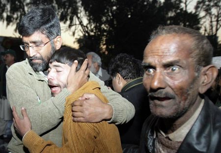 中新網(wǎng)12月27日電 據(jù)法新社報道,巴基斯坦前總理貝-布托今日在競選集會上遭到炸彈襲擊,不治身亡。圖為貝-布托支持者悲痛萬分。(關新)