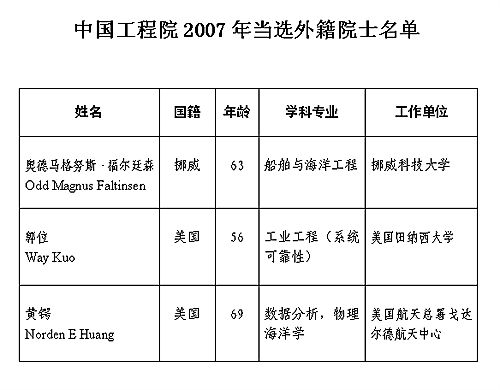 中國(guó)工程院2007年當(dāng)選院士名單