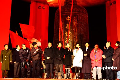 12月31日晚,“喜迎奧運(yùn) 祝福北京”大型主題活動(dòng)在中華世紀(jì)壇舉辦,多位全球華人熟悉的嘉賓在零點(diǎn)時(shí)刻為北京敲響二00八的新年鐘聲,宣告北京正式跨入奧運(yùn)年。千里之外的香港時(shí)代廣場(chǎng)迎新年活動(dòng)通過衛(wèi)星與北京連線互動(dòng),共同慶祝奧運(yùn)年的到來。中新社發(fā) 鄭雄增 攝