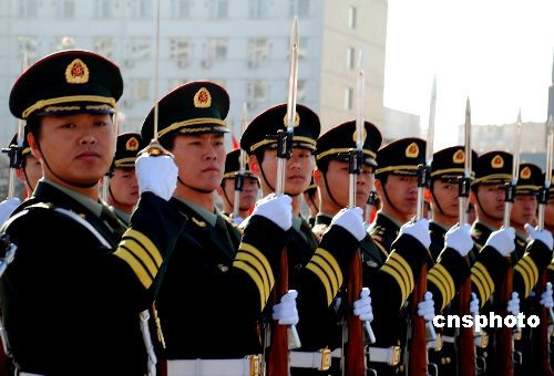 中國三軍儀仗隊天寒地凍熱練兵(2)