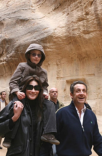 1月5日,法國(guó)總統(tǒng)尼古拉·薩科齊與布呂尼母子在約旦佩特拉古跡參觀。 據(jù)法國(guó)媒體1月6日?qǐng)?bào)道,法國(guó)總統(tǒng)薩科齊2月將與新女友卡拉·布呂尼結(jié)婚。