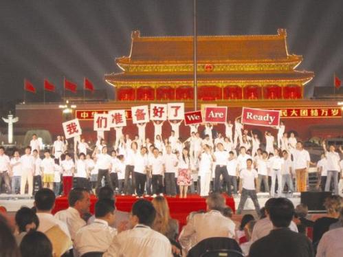 9)奧運會倒計時一周年天安門廣場大型演出活動,《明橋體育》總編和時代華語廣播電臺臺長作為休斯頓及美南地區(qū)華文媒體代表應(yīng)邀出席現(xiàn)場觀禮----2007年8月8日是北京奧運會倒計時一周年,北京奧組委當晚在天安門廣場舉行大型文藝演出和慶;顒印P菟诡D及美南地區(qū)兩家華文媒體的負責人,《明橋體育》總編輯勞荊和時代華語廣播電臺臺長美齊應(yīng)北京市僑辦邀請,作為貴賓出席了現(xiàn)場的觀禮活動以及多項紀念和慶;顒印