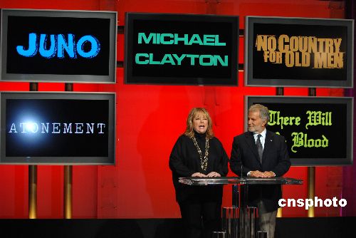 第八十屆奧斯卡金像獎提名名單二十二日拂曉如期公布,《老無所依》(又譯《險路勿近》)、《未血綢繆》(又譯《血色黑金》)、《邁克爾·克萊頓》、《朱諾》和《贖罪》入圍最佳影片。中新社發(fā) 張煒 攝