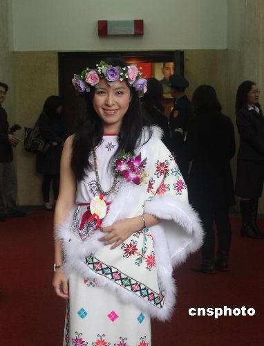 為吸引記者,一些“立委”的著裝花樣翻新。圖為一位“立委”頭戴花環(huán)前來報到。