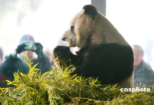 圖:大熊貓“蘇蘇”抵達(dá)蘇州與游客見面