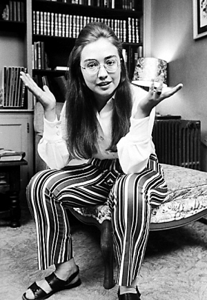 在上世紀60年代,希拉里仍是年輕大學生時,卻留了一頭禾稈草般的厚重長發(fā),加上一雙土土的涼鞋,令她看上去像一位大嬸,而且她又穿了一條夸張的“豎條長褲”,感覺像滑稽小丑,爆笑效果一流。對于這張“經典倩影”,希拉里依然力撐到底:“這不是我的錯!60年代流行這一套!”