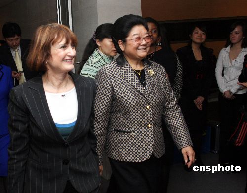 當(dāng)?shù)貢r(shí)間11日晚,中國全國人大常委會副委員長、全國婦聯(lián)主席顧秀蓮在倫敦市長利文斯通的陪同下,參觀在倫敦市政廳舉辦的“中國婦女”攝影展。