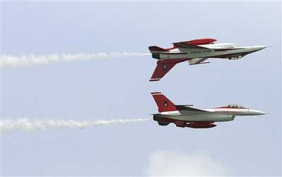 組圖:特技飛行隊(duì)在新加坡航展上的精彩表演(4)