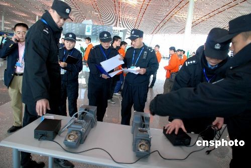 圖為機(jī)場工作人員在測試搜爆儀。