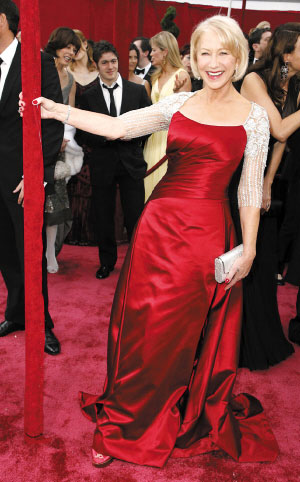 海倫·米倫 最成熟的紅色穿法。去年的奧斯卡影后海倫·米倫以一身“女王紅”亮相,米倫本人非常喜歡這條George Chakra長(zhǎng)裙,“它有一種無形流露的力量感”,袖子部位則全部由施華洛世奇的水晶綴成。