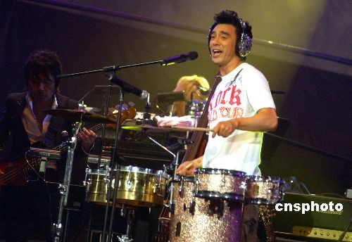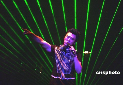 三月七日晚,破產(chǎn)后重生的香港歌星鐘鎮(zhèn)濤(阿B)在紅館舉行《Kenny B Premier Live 08》首場演唱會(huì)。中新社發(fā) 蔡蔓莉 攝
