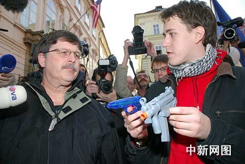 中新網(wǎng)布拉格3月16日電 在昨天下午布拉格舉行的反對(duì)美國在捷克建立中歐導(dǎo)彈防御系統(tǒng)的雷達(dá)基地的示威游行中,捷克示威民眾要求美國駐捷克大使館向美國政府轉(zhuǎn)交他們尋獲的所謂“伊朗大規(guī)模殺傷性武器”的證據(jù),而這些證據(jù)實(shí)際上只是一些塑料兒童玩具。示威者用一種特殊方式嘲笑和譏諷美國政府尋找戰(zhàn)爭借口如同兒戲,入侵伊拉克還想打伊朗。