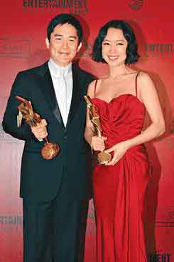 中新網(wǎng)3月18日電 第二屆亞洲電影大獎頒獎禮昨晚在灣仔會展舉行,亞洲多地名導、紅星匯聚頒獎禮,大熱門梁朝偉憑《色,戒》奪影帝,全度妍則憑《密陽》勇奪影后殊榮,該片奪三項大獎,是今年的大贏家。
