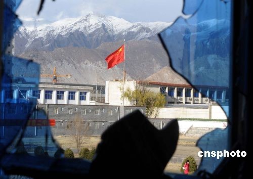 3月21日,從拉薩二中教室的窗口向外眺望。