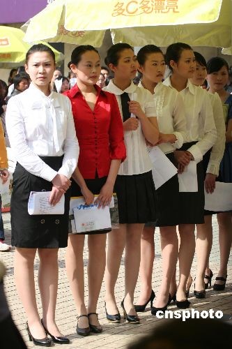 3月22日,2008中國新空姐招募大會在鄭州二七廣場舉行揭幕儀式。當日,來自全國各地的兩千多位美女云集鄭州報名應聘。據(jù)介紹,這是有史以來最大規(guī)模的空姐招募,此次招募大會計劃在全國招募500名空姐,其中鄭州地區(qū)招募55名空姐。中新社發(fā) 陳代述 攝