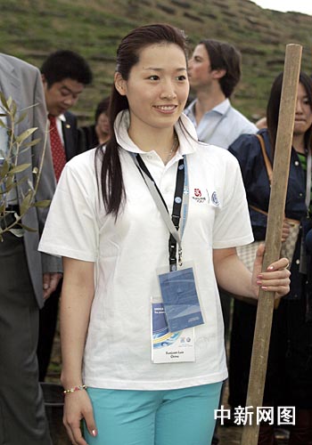北京奧運會火炬希臘傳遞的第一位中國火炬手、雅典奧運會游泳冠軍羅雪娟,3月23日在希臘古奧林匹亞遺址顧拜旦紀念碑后的世界和平林種下橄欖樹苗,以幫助恢復古奧林匹亞遺址周圍2007年夏天遭受大火嚴重破壞的自然環(huán)境。中新社記者 王歡