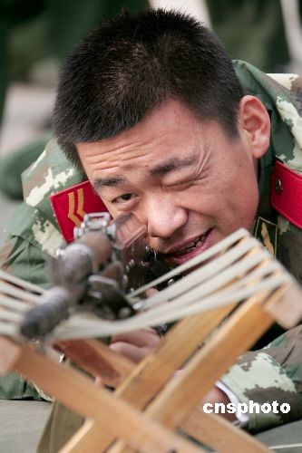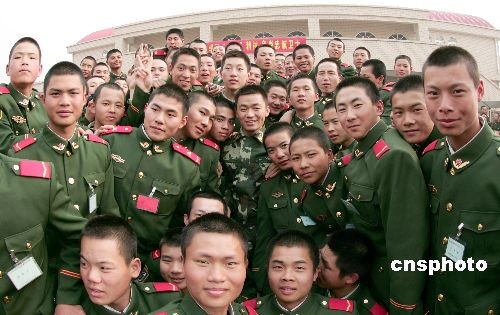 3月21日,《士兵突擊》中扮演許三多的新星王寶強,應(yīng)邀來到武警河北總隊邢臺市支隊新訓大隊,與新兵面對面交談,共話軍旅人生。中新社發(fā) 余洪恩 攝