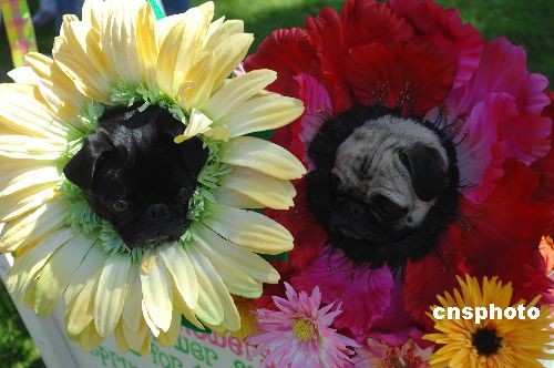 圖為兩只打扮成向日葵的寵物狗成為優(yōu)勝者。