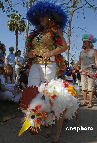 三月二十三日是西方復(fù)活節(jié),洛杉磯長(zhǎng)灘舉行一年一度的“復(fù)活節(jié)愛(ài)犬時(shí)裝秀”,數(shù)百只寵物狗身著艷麗時(shí)裝參加時(shí)裝走秀。有的花枝招展,有的古靈精怪,有的雍容華貴,有的滑稽搞笑。中新社發(fā) 張煒 攝