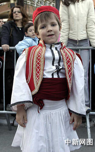 3月26日,北京奧運(yùn)會(huì)圣火希臘境內(nèi)傳遞第三日,抵達(dá)當(dāng)天最后一個(gè)城市韋里亞。當(dāng)?shù)厥忻袷⒀b參加慶典儀式。中新社記者 王歡