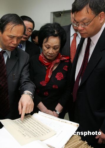 三月二十七日,宋子文長女馮宋瓊頤(中)在其親屬的陪同下參觀了上海圖書館,并在盛宣懷檔案整理工作室里見到了宋子文代理“行政院長”時(shí)所簽署的公文原件。據(jù)悉,這是馮宋瓊頤定居美國近六十年后首次返抵祖國大陸。中新社發(fā) 湯彥俊 攝