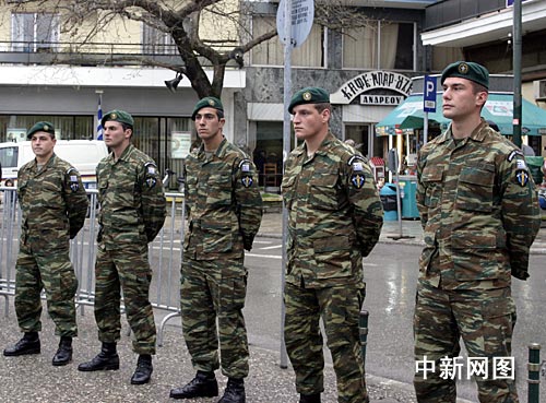 3月27日,北京奧運(yùn)圣火希臘境內(nèi)傳遞第四天,山城納烏薩迎來第一個(gè)慶典儀式。當(dāng)?shù)夭筷?duì)派出軍人維護(hù)儀式會(huì)場治安。中新社記者:王歡