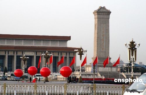 13米高巨型花籃“綻放”天安門廣場