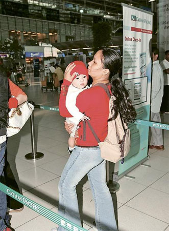 謝霆鋒本月2日跟電影《風(fēng)云II》到泰國拍攝,張柏芝翌日帶著8個(gè)月大的愛子Lucas與家姐抵曼谷尋夫。霆鋒跟大隊(duì)居住Emporium Suites,他為免影響工作故安排母子住四季酒店。隨著柏芝與Lucas的行蹤曝光,吸引更多香港傳媒追訪,他們亦因此變得低調(diào)。有報(bào)道指柏芝“失常”尋夫令霆鋒抗拒,加上他們住不同酒店、又不一起吃飯等也引起揣測(cè)。不過,昨日霆鋒在記者面前的愛妻表現(xiàn),以實(shí)際行動(dòng)粉碎婚變傳言。