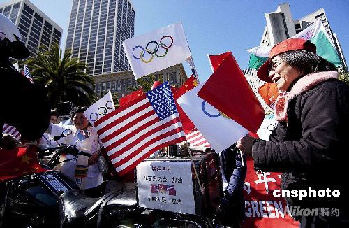 當(dāng)?shù)貢r(shí)間四月九日,北京奧運(yùn)火炬在美國(guó)舊金山傳遞,當(dāng)?shù)厝A人華僑傾力出動(dòng)為北京奧運(yùn)圣火傳遞活動(dòng)加油。 陳鋼 攝